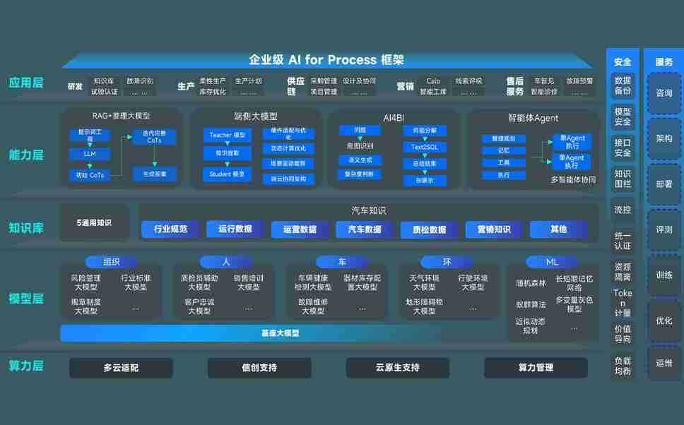 摩登7问学智车解决方案是一套基于AI技术的汽车行业智能化系统,,,,覆盖从底层算力到顶层AI应用的全栈方案。。方案由算力层、、模型层和应用层组成:算力层,,,方案支持多种一体机配置,,,,具备云端灵活部署、、、、多云适配以及动态优化计算资源的能力;模型层,,,摩登7问学平台版提供了企业级AI应用一站式构建与管理平台,,支持基于后训练强化技术的汽车企业专属模型的训练、、、评测和运营;应用层,,摩登7问学DeepSeek版提供包括超级员工、、智能招采、、、、智能营销、、智能客服、、、、AI for BI等一系列解决方案,,可助力汽车行业实现数字化转型,,让管理更智能、、、、响应更敏捷。。。